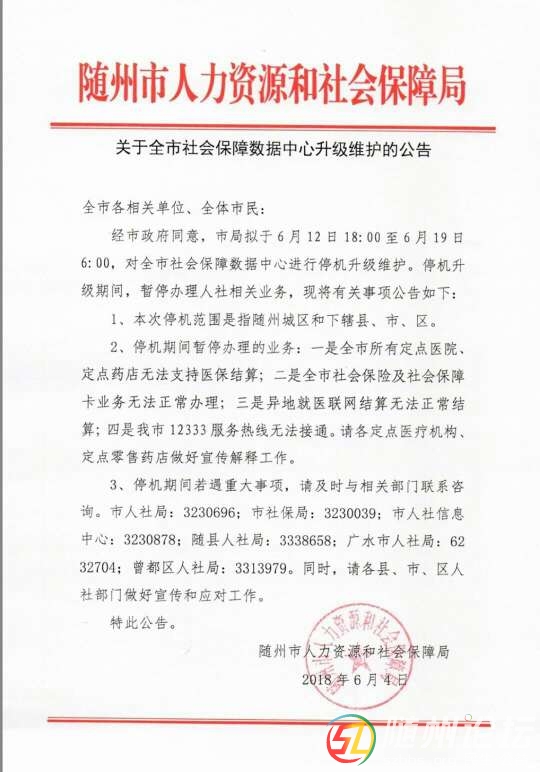 人社信息系統(tǒng)升級維護 啟動醫(yī)保報銷應急預案 為提升便民服務能力,市人社局擬于6月12日18:00至6月19日6:00,對全市社會保障數(shù)據(jù)中心進行停機升級維護。停機升級期間,將暫停辦理人社相關業(yè)務。 本次停機范圍是指隨州城區(qū)和下轄縣、市、區(qū),停機期間以下業(yè)務暫停辦理:一是全市所有定點醫(yī)院、定點藥店無法支持醫(yī)保結(jié)算;二是全市社會保險及社會保障卡業(yè)務無法正常辦理;三是異地就醫(yī)聯(lián)網(wǎng)結(jié)算無法正常結(jié)算;四是我市12333服務熱線無法接通。 針對此次停機升級,市社保局特制定了停辦事項及處理辦法,特別是針對醫(yī)保報銷啟動了應急預案:1、暫停全市定點醫(yī)療機構(含村衛(wèi)生室和社區(qū)門診)醫(yī)保普通門診、慢性病門診和門診統(tǒng)籌業(yè)務,暫停全市(市直、曾都、廣水、隨縣)醫(yī)保刷卡網(wǎng)絡,各定點藥店停辦醫(yī)保刷卡購藥業(yè)務;2、重大疾病門診(如透析)、住院、出院業(yè)務不受影響,由醫(yī)療機構先行受理并按正常辦理,相關費用待醫(yī)保系統(tǒng)恢復后再補錄并上傳;3、轉(zhuǎn)診業(yè)務需異地轉(zhuǎn)診的人員憑醫(yī)院開具的轉(zhuǎn)院手續(xù),經(jīng)醫(yī)保經(jīng)辦機構備案后,到轉(zhuǎn)診的定點醫(yī)院辦理入院手續(xù),在這個期間,出院時全額墊付醫(yī)療費用,然后憑費用發(fā)票、明細、出院小結(jié)等相關出院資料到所屬醫(yī)保經(jīng)辦機構辦理報銷。 本次信息系統(tǒng)進行停機升級是為了提升服務質(zhì)量,創(chuàng)造更好的機房環(huán)境,人社部門的工作人員已從數(shù)據(jù)備份到設備調(diào)整均做了詳細安排部署,升級維護將加強對服務器及網(wǎng)絡設備的重點保障,提升數(shù)據(jù)中心的數(shù)據(jù)處理能力及安全防護能力。請需要辦理業(yè)務的市民安排好時間,避免影響業(yè)務辦理。 各醫(yī)保經(jīng)辦機構聯(lián)系方式: 市社會保險局 0722-3232089 隨縣醫(yī)療保險局 0722-3339236 廣水市醫(yī)療保險局 0722-6230640 曾都區(qū)醫(yī)療保險局 0722-3315055 |