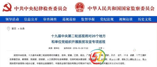 經(jīng)黨中央批準(zhǔn),十九屆中央第二輪巡視將對(duì)26個(gè)地方、單位黨組織開(kāi)展脫貧攻堅(jiān)專(zhuān)項(xiàng)巡視。作為中央巡視組針對(duì)脫貧攻堅(jiān)展開(kāi)的首次專(zhuān)項(xiàng)巡視,本次“政治體檢”將深入查找脫貧攻堅(jiān)中普遍性、傾向性問(wèn)題。 中央紀(jì)委國(guó)家監(jiān) ...