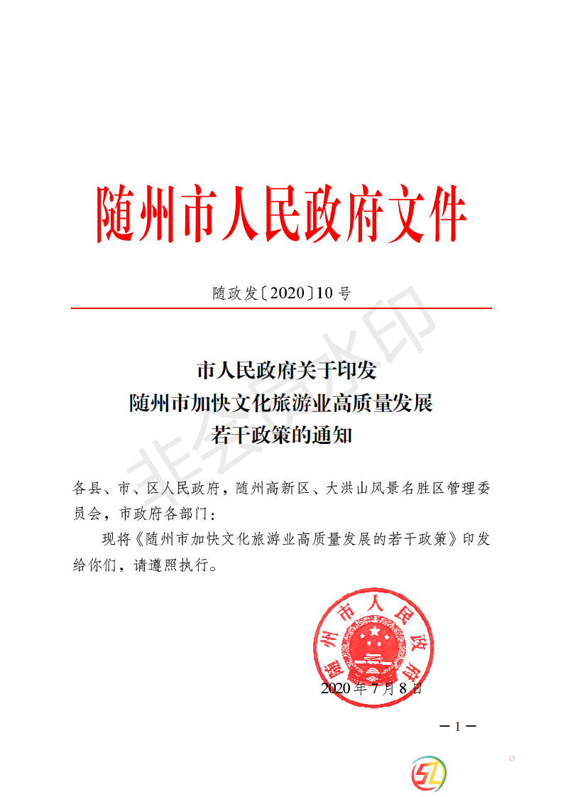 4 《市人民政府關(guān)于印發(fā)隨州市加快文化旅游業(yè)高質(zhì)量發(fā)展若干政策的通知》隨政發(fā)〔2020〕10號(hào)